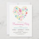 Invitation à la fête de la fête du Coeur Floral. Les fleurs Invitation sont rose, turquoise, orange et verte.