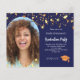 Ajoutez votre propre photo verticale du diplômé. Un cadre d'arc photo. Une couleur arrière - plan marine chic, décorée de faux étoiles dorées. Personnalisez et ajoutez un nom et des détails du parti. Lettres d'or.