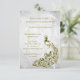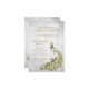 Créez un invitation unique tout seul avec une invitation à la douche nuptiale Gold Peacock Leaf Vine. Le design de l'invitation est composé d'un arrière - plan gris clair avec un paon doré éclatant orné d'une feuille de vigne. Personnalisez avec les noms du marié et de la mariée avec les détails de la douche de la mariée. Papier à lettres mariage supplémentaire disponible avec cette conception aussi. Vous avez besoin d'aide pour la personnalisation ? Merci de me contacter et je travaillerai sur le libellé et les détails pour adapter ce design à votre satisfaction.