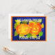 Invitation colorée à la fête d'Halloween avec deux citrouilles brillants sur un arrière - plan bleu foncé d'un collage de papier peint à la main par Judy Adamson. La lettre, 'Halloween Party ! S'il vous plaît, rejoignez-nous !" est en blanc et le dos de la carte est laissé vide pour que vous puissiez ajouter les détails de l'invitation.