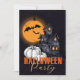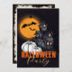 Invitation de la fête d'Halloween avec les Citrouilles et Lune. Carte d'invitation festive pour la fête costumée d'Halloween. Circulaire de vacances modifiable. Créez votre propre carte de plaisir et invitation vos amis à une fête d'Halloween. Indiquez la date, l'heure et le lieu de votre fête.