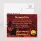 Chat noir effrayant sur un arrière - plan orange et noir abstrait avec texte jaune invitation de la fête de nuit d'Halloween. Envoyez une carte postale ou insérez-la dans une enveloppe. Personnalisez avec votre propre texte.
