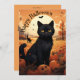 Chat noir tendance et élégant dans un Patch Citrouille Halloween Party Invitation qui peut être personnalisée.