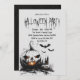 Costumes & Cocktails adulte Halloween invitation fête. Le design est composé d'arrière - plan gris, de bois déplaisants, de citrouilles éffrayants, de château sombre et de chauves-souris. Tout est personnalisable. Correspondance des articles de fête d'Halloween dans notre magasin. Personnalisez avec vos détails.