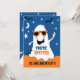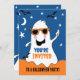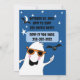 Un fantôme adorable avec des lunettes sur un ciel bleu nuit avec étoiles et chauves-souris. Invitation double face avec texte customisé.