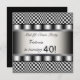 Amusant moderne noir et blanc chèque design femme's 40e anniversaire invitation de fête. Personnalisez l'avant et customisez l'arrière avec le style de police et la couleur de police de votre choix, et la couleur de l'arrière - plan du côté arrière.