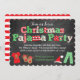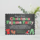Cette invitation ludique et festive au tableau noir de Noël Pyjama Party est parfaite pour tout événement à thème pyjama de Noël ! Ce design est composé d'un arrière - plan de style tableau noir, de lettres de motif de couleur de Noël lumineuses et de graphiques et d'illustrations amusantes de Noël le long du fond, y compris pyjamas de Noël, chaussons de rennes, sucre de canne et chapeau de Père Noël!
