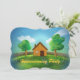 Jolie illustration avec une maison et un jardin mignons - invitation parfaite à la fête de réchauffement au foyer