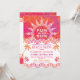 Invitation "Amusement au soleil" avec des vagues, un soleil ajouré, des palmiers et des couleurs tropicales chaudes. Parfait pour la plage, la piscine, un Sweet Sixteen, un anniversaire, un BBQ ou n'importe quelle fête d'été — il suffit de modifier le texte. Personnalisez avec votre propre texte. Espace au dos pour plus d'informations ou une photo. Illustration originale de pj_design. Veuillez vérifier ma boutique pour en voir d'autres similaires.