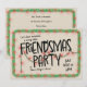 Invitation votre équipe pour fêter la saison avec cette invitation joyeuse Friendsmas Party! Avec son design lumineux à cordes, sa frontière de guirlande festive et sa grande place pour les détails de votre fête, c’est la meilleure façon de répandre la joie des fêtes. Réunissez vos gens préférés pour un joyeux petit Ami avec cette invitation joyeuse à la fête! Le design comporte un titre "Friendsmas Party" écrit à la main, avec des lampes à cordes festives tissées à travers le texte, le tout encadré par une bordure de guirlande brillante. L'arrière - plan crème légère ajoute de la chaleur et facilite la lecture des détails de votre fête, tandis que le dos offre beaucoup d'espace pour les infos RSVP, les notes d'échange de cadeaux et d'autres détails. Idéal pour des fêtes décontractées, des échanges de cadeaux ou des soirées intimes entre amis, cette invitation Friendsmas donne un ton joyeux à votre célébration. Customisez avec votre propre texte pour le rendre unique et préparez-vous à célébrer la saison avec style. Thème : Amies, Noël, Fête de Fêtes. Éléments de conception : Feux à cordes, bordure verte de garland, lettrage à la main. Occasions : Fêtes d'amis, réunions saisonnières, échanges de cadeaux festifs.