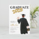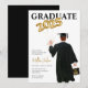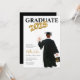 Invitation à la remise des diplômes pour la fête de remise des diplômes du mec. Portrait masculin dessin diplômé en casquette noir et robe, cheveux bruns et classe d'or de 2025 ballons. Personnalisez tous les détails de la fête de votre diplômé pour une invitation unique de remise de diplômes.