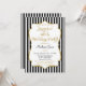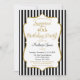 Une élégante invitation à la fête d'anniversaire en noir et or, avec des rayures noires et blanches et un cadre texte de parties scintillant en or. Le cadre de texte de parties scintillant sur cet invitation de fête d'anniversaire classique et classe présente une ombre pour donner un aspect surélevé. Cet invitation de fête noir et or est sûr de plaire à cette vedette d'anniversaire spéciale dans votre vie. Parfait pour les anniversaires jalons tels que 18ème 20ème 21ème 30ème 35ème 45ème 55ème 55ème 60ème 65ème 70ème 75ème 80ème 85ème 90ème 95ème et 100 ...ou n'importe quel âge !