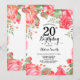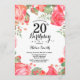 Invitation à la florale rouge botanique du 20e anniversaire. Floral Pink Peonies Invitation d'anniversaire pour les femmes. Fleur florale aquarelle. Fleurs de roses et de pivoines élégantes. Anniversaire adulte. Arrière - plan blanc. Noir et Blanc. 13e 15e 16e 18e 20e 21e 30e 40e 50e 60e 70e 80e 90e 100e, n'importe quel âge.