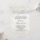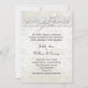 Elégante et traditionnelle invitation à un mariage personnalisé, avec un arrière - plan damassé couleur ivoire. Des graphiques en dentelles blanches, au sommet, sont décorés d'un chapelet de perles et d'un arc blanc. Le texte en gris est entièrement personnalisable selon vos besoins. Joli faire-part de mariage adapté à tout moment de l'année. Produits mariages correspondants disponibles.