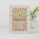 Ayez une douche nuptiale de campagne élégante avec cette invitation! Présente un tournesol jaune vif, un ruban en vichy vert, une dentelle blanche et un arrière - plan de texture burlap brun.