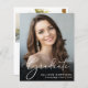 Célébrez les réalisations de votre diplômé grâce à cette élégante faire-part de remise de diplômes et à l'invitation de la fête, qui est à la portée du budget. Sa photo préférée remplit la carte de "Graduate" superposée sur le dessus dans un script blanc ; en dessous, ajouter son nom, l'école et l'année de classe. Au verso, ajoutez une photographie supplémentaire et une fête de remise de diplômes ou des détails de la maison ouverte.