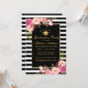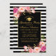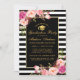 Carte d'invitation à la fête de graduation Florale Aquarelle rose avec bandes noires et blanches