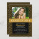 Invitation de remise de diplômes de photo moderne avec un arrière - plan en dentelle or & noir avec un groupe d'or en surbrillance Classe de 2014. Retournez notre invitation élégante et chic pour trouver une bande correspondante pour une touche spéciale supplémentaire. Notre carte photo diplômée peut également être utilisée pour un faire-part de remise de diplômes et est facile à customiser avec vos informations de fête. Parfait pour une fête de fin d'études secondaires ou une fête de fin d'études collégiales pour un garçon diplômé ou une fille diplômé. Visitez notre boutique pour une large sélection de couleurs populaires de l'école.