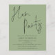 Script Sage Green Hen Party. Un prix économique PETIT 4,5 po x 5,6 po alternatif. Disponible dans un STOCK SEMI-GLOSS 110 lb CARD qui est l'option par défaut (plus épais pour les invitations), OU un STOCK SATIN FINISH 80 lb THINNER PAPER (idéal pour les boîtiers). Les enveloppes sont en option et légèrement plus grandes que la taille de la carte. Ce design moderne pour votre Hen Night Invitees a établi un script élégant pour le titre principal en haut et facilement personnalisable avec vos détails en dessous. Vous pouvez également modifier les couleurs du texte et de l'arrière - plan de chaque côté si vous le souhaitez via l'option Customiser plus.