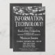 Un joyeux tableau noir et blanc invitant à la remise des diplômes en technologie de l'information avec des lumières brillantes au sommet.