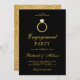 Éblouissez vos invités avec cette élégante invitation de fiançailles avec une belle bague en diamant doré contre un arrière - plan noir. Ajoutez simplement les détails de votre événement sur ce modèle facile à utiliser pour en faire une invitation unique. Retournez la carte pour révéler une belle texture fausse parties scintillant d'or au dos de la carte. Cette invitation est entièrement personnalisable. Tous les textes sont modifiables et la couleur arrière - plan peut être facilement changée selon ce qui vous convient le mieux.