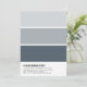 L'invitation de la fête au chaud ménager, conçue avec soin, imite l'aspect d'une carte à puce de peinture, avec trois rectangles dans des tons gris foncé, ardoise et bleu marine. Personnalisez avec les détails de votre fête de réchauffage au foyer sous le lettrage noir moderne. Pour modifier la couleur des puces de peinture, cliquez sur "Customiser" et sélectionnez une nouvelle couleur arrière - plan dans la palette, ou entrez un code hexadécimal personnalisé. Les couleurs seront automatiquement mises à jour dans trois nuances de coordination.
