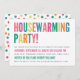 Invitations amis et famille pour célébrer votre nouvelle maison avec ces invitations audacieuses, élégantes et colorées à la fête du ménage! Ce design présente un motif confetti coloré sur le dos.