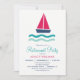 Nautical Sailboat invitation de la fête de retraite. L'Invitation possède un voilier bleu marine, rose, turquoise et des vagues.