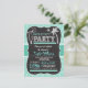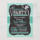 Invitation de la retraite tropicale avec des polices d'aspect de tableau noir rétro sur aqua cercles turquoise motif. L'invitation comprend un cocktail à l'allure de craie et une partie de palmier avec des éléments de conception ric rac.