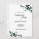 Cette invitation à la fête de fiançailles botaniques neutres offre un palais plante simple et rustique pour coordonner avec n'importe quel thème traditionnel de fête de fiançailles. La verdure minimale, aux tons gris foncé et gris d'élégants feuillages feuille et plantes d'eucalyptus verts, aux côtés de la calligraphie décontractée, ouvre une ambiance de nature minimaliste à une célébration classique et formelle.