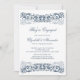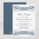 Notre élégante faire-part fiançailles dispose d'un magnifique parchemin vintage en bleu. Parfait pour une invitation à une fête d'engagement ou un faire-part fiançailles ! customisez simplement vos informations et vous êtes tous prêts à partir ! Les articles correspondants incluent invitation de douche nuptiale, cartes de remerciements, timbres et plus encore dans notre magasin!