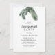 Cette invitation à la fête de fiançailles verdoyante d'hiver est parfaite pour un événement élégant. Le design moderne de l'automne ou de l'hiver est doté d'une verdure d'aquarelle simple et de feuilles d'oliviers foncés, dans un esprit de vacances rustique.