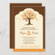 Une invitation à la fête moderne et élégante, idéale pour un événement d'automne ou d'automne. Doté d'un arbre aux feuilles aux couleurs solides et de deux coeurs suspendus à celui-ci pour symboliser la mariée et le marié. Une bordure en couleur solide complète ce design agréable. Ajoutez votre propre libellé.