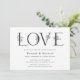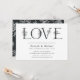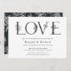 L'élégante invitation à la fête de fiançailles florales présente "LOVE" en lettrage noir et élégant orné de minuscules fleurs. Personnalisez avec les détails de votre célébration fiançailles sous.