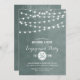 Design chic et moderne d'invitation de mariage d'été avec des lampes à cordes élégantes et simples accrochées au sommet et un mélange classe de polices de script modernes et de calligraphie sur un arrière - plan imprimé de texture fausse aquarelle. Un design simple et élégant, parfait pour l'été ! Cliquez sur le bouton CUSTOMISER IT pour customiser les polices, déplacer du texte et créer votre propre conception unique d'invitation unique.