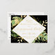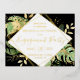 Cette carte postale élégante et moderne en feuille d'or tropical "Engagement Party" est une façon simple d'inviter des amis et des familles à célébrer votre fiançailles. Le nom, la date et l'emplacement du couple sont indiqués sur le devant dans la couleur du papier peint de votre choix. Le texte est mis en surbrillance par un cadre dépoli. Des feuilles tropicaux, des feuillages et des fougères s'élèvent derrière le cadre sur un arrière - plan noir. Les plaques de feuille d'or ajoutent un peu de fantaisie sophistiquée à la conception. Le dos de la carte postale contient les détails de la fête de fiançailles en noir.