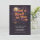 Dotée d’un balai de sorcière, d’un chat noir et d’un citrouille brillant, cette invitation prépare le terrain à une soirée magique et mystérieuse d’Halloween. (OEuvre générée par l'IA)