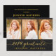 carte photo de collage manuscrit invitant votre famille et vos amis à la fête de remise de diplômes de votre fille. Invitation de la Simple Collage Parties scintillant Graduation Party pour 2014. Design par Elke Clarke © Visitez notre boutique www.zazzle.com/monogramgallery* pour plus de design et de styles. Une simple typographie en feuille d'or manuscrite de texte de police de script écrit superpose sur un arrière - plan de parties scintillant noir (effet photo imprimé) avec les mots "Graduate 2014" avec une conception de trois collages photo. Remplacez les photos par les vôtres. Couleurs noir et or.