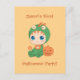 Bébé adorable habillé d'un costume de dragon vert avec pointes orange et bib orange assorti au crâne. Un citrouille courbé se tient juste un peu en arrière. Première invitation de fête d’Halloween du bébé, n’importe quel sexe.