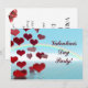 Une belle carte de Saint Valentin avec beaucoup de coeurs rouges rubis tombant dans une mer bleue. Dans l'arrière - plan est un arc-en-ciel.Remplacez le dos par les détails de votre propre fête