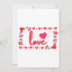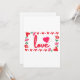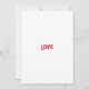 Cette invitation met en valeur le mot «Amour» dans une police d'impression unique avec des lettres rouges et un contour rose à l'intérieur d'un design de style rectangulaire avec des cœurs, des roses et un cœur de style fraise sur deux coins dans ce thème de la Saint-Valentin. Imprimé sur un papier classique de 17,5 pt d'épaisseur avec une finition mate non couchée avec une texture de coquille d'œuf fabriqué et imprimé aux États-Unis avec "Amour" imprimé au dos.