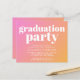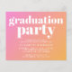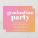Invitation de remise de diplômes moderne, rose et orange, avec "graduation party" dans une police blanche tendance et audacieuse et détails de votre fête dans une simple typographie blanche moderne. Ajoutez l'année scolaire et l'année scolaire du diplômé sur le dos.