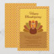 Une dinde de fête avec les mots "bon thanksgiving" est recouverte sur un or et un arrière - plan orange de point de polka. Perfectionnez pour des invités d'invitation à votre partie. (Point de gel)