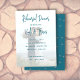 Répétition invitation dîner avec grand arrière - plan photo. Ajoutez une photo du couple pour créer l'image arrière - plan de cette carte. Le texte est utilisé en bleu foncé, en écriture moderne et en texte imprimé. Le dos des cartes plates sont également bleu foncé avec de minuscules coeurs motifs.