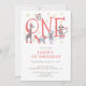 Typographie illustrée unique en son genre vacances hiver 1er anniversaire invitation de fête. Un collage unique et fantaisiste d'animaux peints en bois et de safari. Un choix parfait pour un premier anniversaire d'enfant pendant la saison des fêtes d'hiver. Style illustré unique.