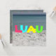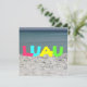 Une invitation avec une photo arrière - plan d'une plage de sable blanc et d'eau bleue. Texte "LUAU" en police d'îlot multicolore. En face, une photo arrière - plan d'eau bleue de l'océan. Customisez avec les détails de votre événement.