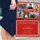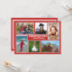 Carte de remise de diplômes rouge avec modèle multi-photo sur le devant. Cadres photo blancs et texte blanc avec trois lignes sur le devant et informations d'invitation au verso. Félicitations, avec son nom, nom de l'école et année de remise des diplômes conviendront sur le devant entouré de diverses photos de l'enfance du diplômé, de la famille, des animaux de compagnie préférés, etc. Le verso est rouge uni avec un cadre extérieur blanc et un texte imprimé blanc.