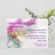 Invitation festive pour votre Mardi Gras avec perles colorées, masque violet et plumes. Facile à customiser avec les détails de votre événement.