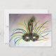 Peinture aquarelle aux petites touches pastel d'un masque Mardi Gras en plumes. Le utilise les couleurs traditionnelles Mardi Gras de violet, vert et or. Deux plumes de paon viennent compléter le masque. Personnalisez cette invitation de masque Mardi Gras avec vos propres détails de fête.