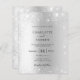 Une invitation de mariage moderne, minimaliste et formelle. Fond de couleur argentée fausse décoré de paillettes fausses. Personnalisez et ajoutez vos noms et détails. Lettres de couleur noire.